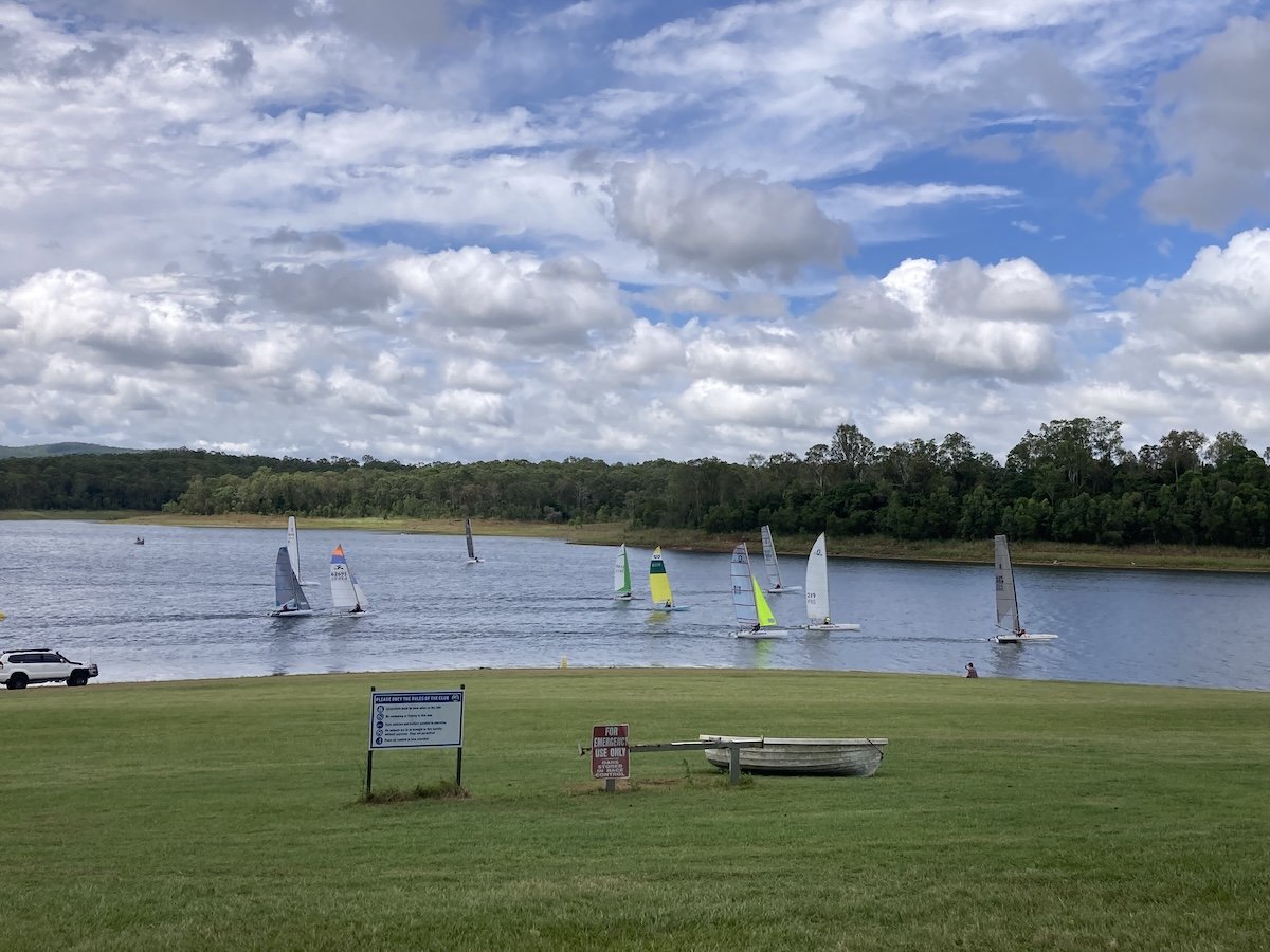 The forecast wasn’t looking great, with rain and storms forecast but 15 boats lined up for the first of the summer series. Great to see some hobie 16 sailors having a go at their first race and nice to see Lydia and Lyssa competing on the Bics as well as guests Leon and another A class sailor. We ended up with a few issues with a torn sail and a ripped tramp and one capsize, but we had had a great day out.
